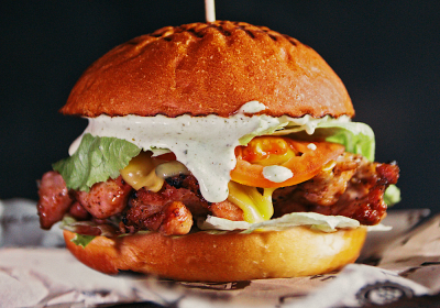Рваная свинина собственного приготовления, свежие овощи, салат айсберг, фирменный соус, хрустящий лаваш